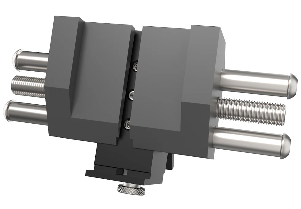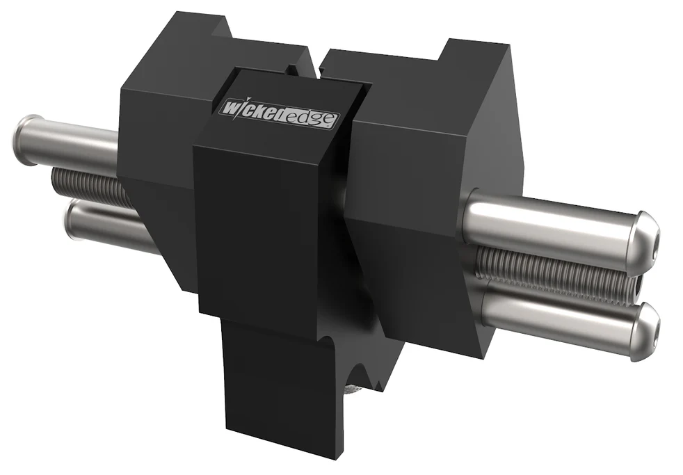 Mount the Wicked Edge Chisel Attachment in the vise of any Wicked Edge sharpener to clamp any flat chisel or plane blade up to 4" in width.